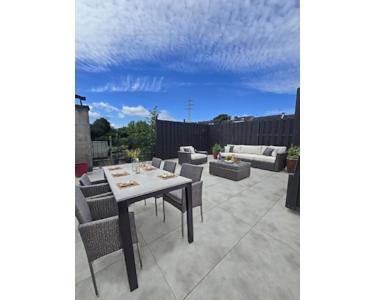 Das Highlight dieser Etage ist die großzügige Dachterrasse von etwa 40 m². Ob Sonnenbaden, Grillen oder ein geselliger Abend mit Freunden – dieser Außenbereich ist perfekt für besondere Momente.