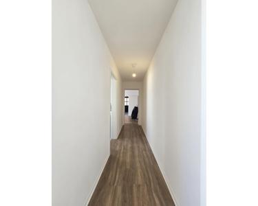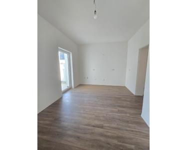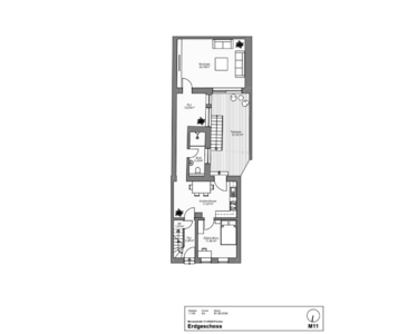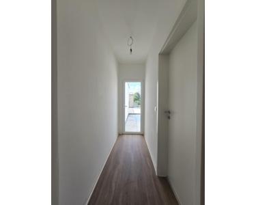 Über den Flur gelangen Sie zum modern ausgestatteten Badezimmer im ersten Stock sowie in den ruhig gelegenen Wohnbereich. Das Wohnzimmer mit direktem Zugang zur Terrasse bietet einen schönen Blick auf den Innenhof und lädt zum Entspannen ein.