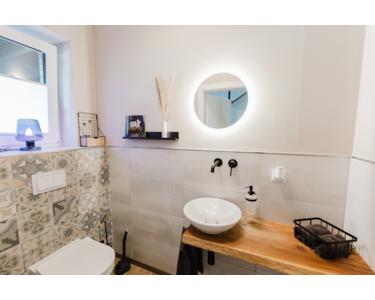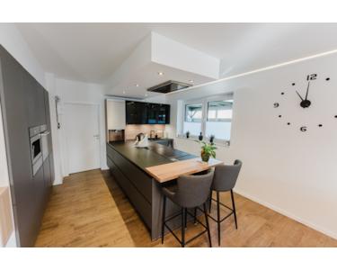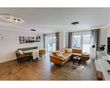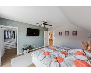 Das Haus präsentiert sich in einem äußerst gepflegten Zustand und wurde mit hochwertigen Materialien ausgestattet. Große Fensterflächen sorgen für lichtdurchflutete Räume und ein angenehmes Wohngefühl. Zur Ausstattung gehören eine Erdwärmeheizung, eine moderne Be- und Entlüftungsanlage mit App-Steuerung, ein Smart-Home-System von Eltako, ein Glasfaseranschluss sowie eine Fußbodenheizung in allen Räumen. Darüber hinaus ist eine Photovoltaikanlage mit 16 kW zur Eigennutzung vorhanden. In der Küche stehen Miele-Geräte und ein Quooker zur Verfügung, und auch die Gartenbewässerung lässt sich bequem per App steuern. Für E-Mobilität ist das Objekt bestens gerüstet: Eine Wallbox ist bereits installiert, eine zweite ist vorbereitet. Abgerundet wird das Angebot durch eine Garage, einen Abstellraum und PKW-Stellplätze im Freien.