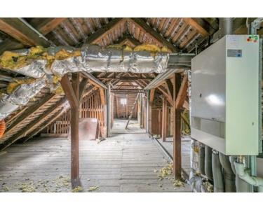 Im Spitzboden befinden sich zwei Bodenkammern sowie die Heizungsanlage.