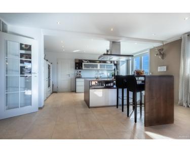 Im Wohn- und Essbereich empfängt Sie ein edler Eichen-Parkettboden, der eine einladend warme und zugleich stilvolle Atmosphäre schafft. Natursteinböden in Unter- und Erdgeschoss akzentuieren den hochwertigen Charakter des Hauses. Die Ausstattung vereint Komfort und Eleganz: ein Kachelofen im Wohnzimmer, ein Schwedenofen im Wintergarten und ein Specksteinofen im Untergeschoss sorgen für wohlige Wärme und Gemütlichkeit.