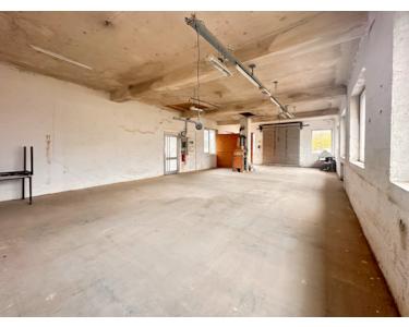 Diese Lagerhalle bietet eine Nutzfläche von etwa 100 m² bei Abmessungen von ca. 16 m Länge, ca. 7 m Breite und einer Höhe von ca. 3,10 m. Sie ist mit einem Holzofen, Stromheizungen an der Decke und einem elektrischen Tor ausgestattet. Das Tor ist ungefähr 2,70 m breit und etwa 3,10 m hoch. Eine Fensterfront mit vier Fenstern sorgt für Tageslicht im Innenraum.Keine Toilette und Wasser vorhanden, daher nur als Lager an Gewerbekunden zu vermieten.