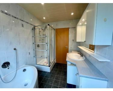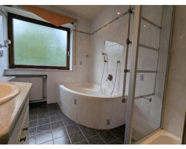 •Badezimmer mit Fenster, Eckbadewanne und Dusche