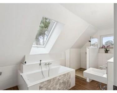 Das Dachgeschoss ist doppelt gedämmt worden, wird mit wenig Nebenkosten über erneuerbare Energien beheizt. Die Fußbodenheizung kann bei heißen Temperaturen auch als Klimaanlage genutzt werden.