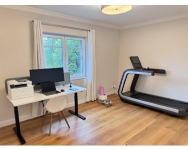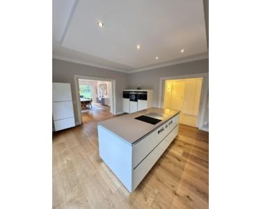 •Böden & Raumgefühl: Wohn-/Essbereich und Arbeitszimmer mit breiten Eichenechtholz-Dielen; übrige EG-Flächen in 60×60 cm Fliesen (Betonoptik). Deckenhöhe 2,8m.