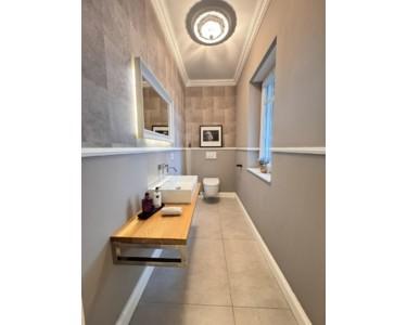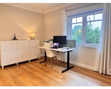 Die 2016 fertiggestellte Villa bietet fünf einladende Zimmer, zwei Badezimmer sowie ein separates Gäste-WC – ideal für Familien, Homeoffice und Gäste. Für behaglichen Wohnkomfort sorgt eine Fußbodenheizung, die auf beiden Ebenen gleichmäßige Wärme liefert und die Wände frei für Möbel und Kunst lässt. 2025 erfolgte die letzte Modernisierung; ein aktueller Bedarfsausweis wurde erstellt und liegt vor.