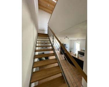 -schöne Innentreppe aus Eichenholz und Stahlwangen mit