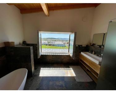 -Badezimmer mit zusätzlicher Wandheizung, Dusche und freistehender Badewanne