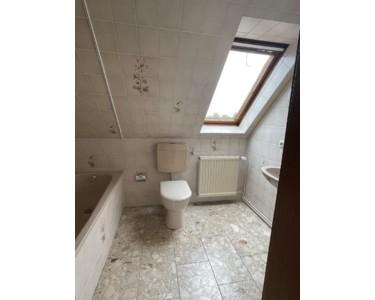Es gibt ein Vollbad mit Fenster im Dachgeschoss sowie ein separates Gäste-WC im Erdgeschoss.