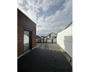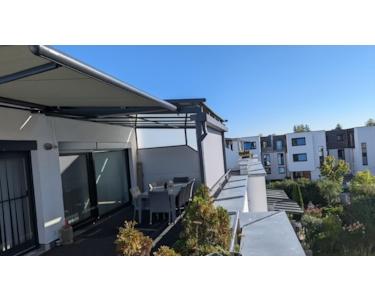 Die großzügige große Dachterrasse auf der Westseite ist das Highlight der Wohnung: perfekt zum Sonnen, Grillen oder Entspannen – mit Glasüberdachung als Witterungsschutz.