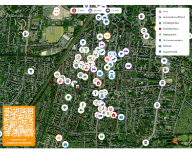 In der unmittelbaren Umgebung befinden sich mehrere bedeutende Points of Interest, die die Attraktivität der Lage unterstreichen. Für den täglichen Bedarf ist eine Apotheke in ca. 265 m Entfernung schnell erreichbar, was die Versorgungssicherheit erhöht. Für sportliche Aktivitäten und Freizeitgestaltung bietet sich die Willi-Jürissen-Halle an, die in ca. 350 m Entfernung liegt und sowohl als Sportstätte als auch als Impfzentrum dient.