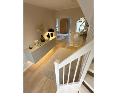 Beim Betreten des Hauses gelangen Sie in die großzügige Galerie, die sich über zwei Etagen