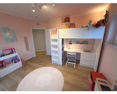 Tarkett ausgestattet. Das Erdgeschoss unterteilt sich in Wohnzimmer, Küche mit