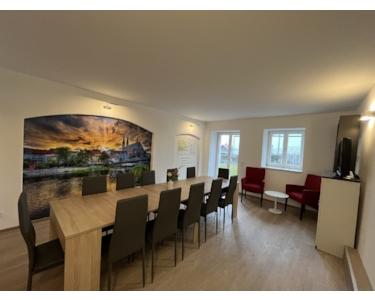 Sie können die Gemeinschaftsterrassen, den Gemeinschaftsraum mit Küche und WC für Feierlichkeiten oder Treffen, einen Fahrradkeller und die große Gartenanlage genießen!