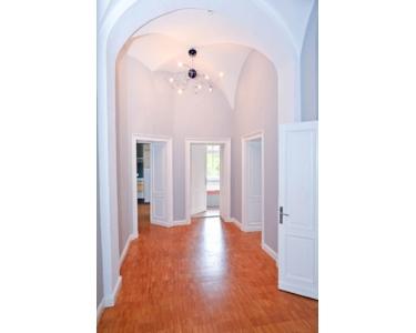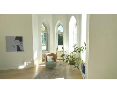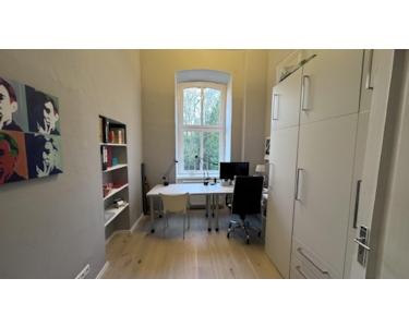 Das Haus entstand in der Gründerzeit; die Wohnung ist 190 m² groß und liegt im ersten Obergeschoss.