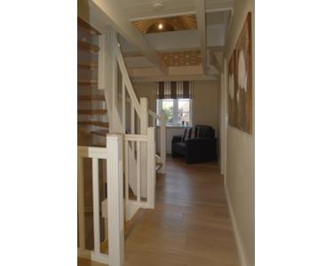 Das Haus ist hochwertig eingerichtet und komplett ausgestattet. Die Böden sind - bis auf die gefliesten Bäder und den gefliesten Küchenbereich - mit Eichenparkett ausgelegt. Die meisten Möbel sind individuell vom Inseltischler angefertigt und eingebaut. Geheizt wird hauptsächlich über ein Wärmepumpenanlage mit Energiegewinnung über die Außenluft.
