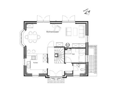Im EG erwartet Sie ein offener Eingangsbereich sowie ein großzügiger Wohn- und Küchenbereich. Dazu noch gemütliches Gastzimmer mit einem Einzelbett - mit separatem Gäste-WC.