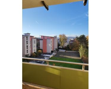 Wohnfläche im vierten Stockwerk einer insgesamt acht Stockwerke umfassenden Wohnanlage an. Das Wohn- und Schlafzimmer haben direkten Zutritt auf den Balkon.
