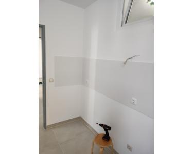 Es wurde alles erneuert vom Badezimmer, den Böden, der Elektrik, den Tapeten, den Heizkörper bis hin zu den Türen usw. Im Badezimmer, in der Küche und im Flur sind Fliesen verlegt. Im Schlafzimmer und im Wohnzimmer wurde ein hochwertiger, 8 mm wasserresistenter Laminatboden verlegt.