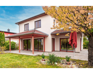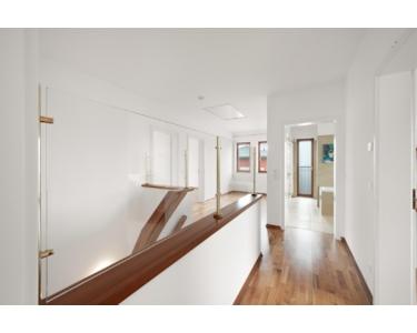 Dieses familienfreundliche Einfamilienhaus beeindruckt durch eine großzügige Raumaufteilung, große überdachte Terrassen, moderne Architektur und Echtholzparkett aus Kirschbaum. Die großzügige Wohnfläche von 221,51 qm (inkl. anteiliger überdachter Terrasse) mit hellen und hohen Räumen sorgen für eine angenehme Wohlfühlatmosphäre. Die Räume im Erdgeschoss sind 3,20 m und im Obergeschoss 2,70 m hoch.