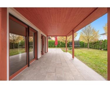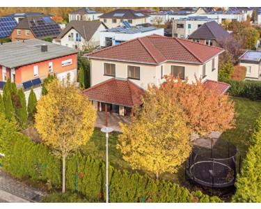 Das Haus verfügt über eine großzügige Terrasse, die sich auf die Süd-, Ost- und Westseite des Hauses erstreckt und auf der Südwest- und Südostseite mit einer großen Überdachung ausgestattet ist. Das Gartengrundstück bietet mit seinen 698 qm ausgiebig Platz zum Genießen.