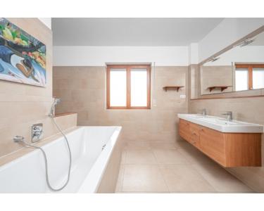 Die Immobilie überzeugt durch hochwertige Fenster und Fenstertüren aus Meranti-Holz mit Zweischeiben-Sicherheitsglas, das exzellenten Wärmeschutz bietet. Genießen Sie die behagliche Fußbodenheizung im gesamten Erd- und Obergeschoss, sowie die beiden eleganten Badezimmer mit hochwertigen Sanitärobjekten und Fliesen von Villeroy & Boch.