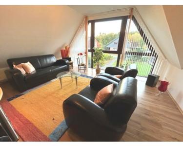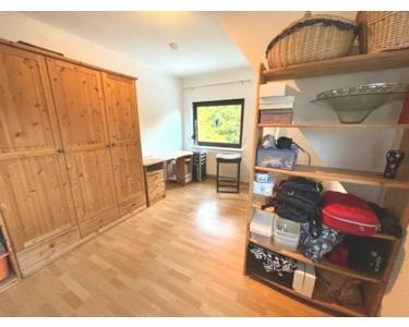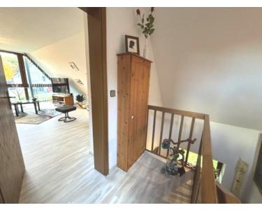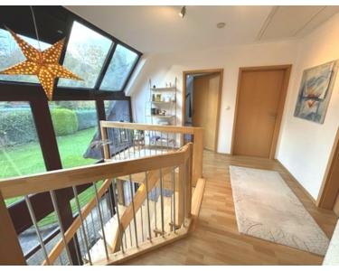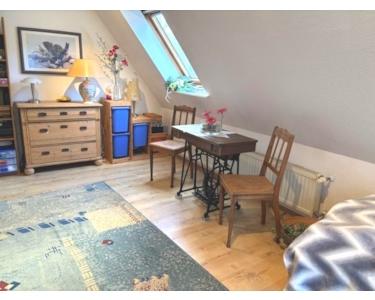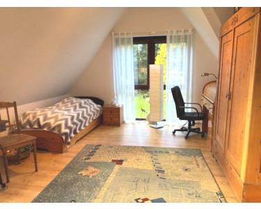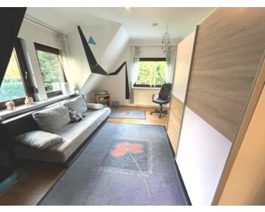 Im Dachgeschoss gibt es zwei Giebelzimmer. Sie verfügen über einen schönen Ausblick in den Garten und die nähere Umgebung. Sie können vielseitig genutzt werden: als Homeoffice, zweites Wohnzimmer, Fitnessraum oder als zwei Schlafzimmer. Große Glasfronten im Giebelbereich lassen viel Licht einfallen und sind nach Süden ausgerichtet. Alles ist mit viel Liebe gestaltet worden.