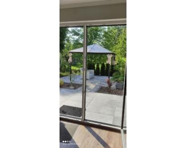 - Gepflasterter Bereich mit Pavillon als schattiger Rückzugsort