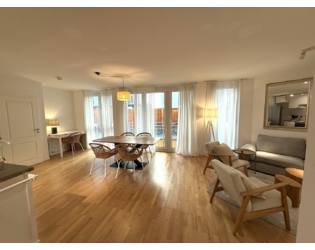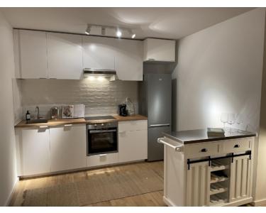 The living area boasts with an open kitchen and a bar that invites to a late-night drink. The friendly dining area invites you to a joint dinner with friends or family. The flat is completely new furnished. One big living area with open kitchen and homeoffice space and 1 Bathroom