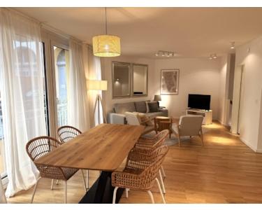 Die Wohnung ist komplett neu möbliert mit Einbauküche und einem einladenen offenen Wohnzimmer,- Essbereich, homeoffice Bereich,Bad, im unteren Bereich finden Sie 2 weiteren Zimmern, 1 Bad, Abstellkammer, Waschraum,Terrasse mit grossem Lichthof.