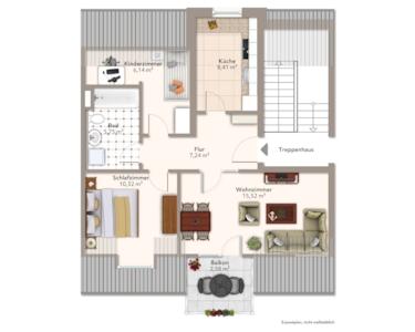 - moderne 2,5-Raumwohnung mit einer Wohnfläche von ca. 53,15 m²