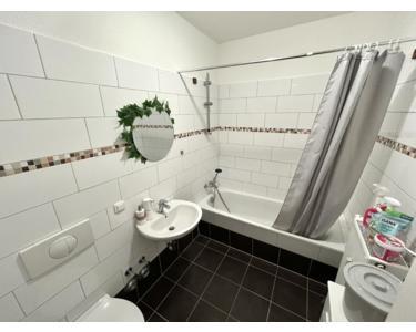 Das moderne Badezimmer verfügt über eine komfortable Badewanne, ideal für entspannende Bäder nach einem langen Tag. Ein Abstellraum mit Waschmaschinenanschluss bietet Ihnen praktischen Stauraum und die Möglichkeit, Ihre Wäsche bequem zu erledigen, ohne Platz in der Hauptwohnfläche einzunehmen.