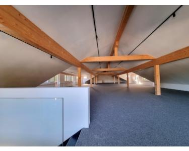 Errichtet in traditioneller Holzbauweise, bietet das Gebäude eine einzigartige Verbindung aus regionaler Baukultur und zeitgemäßem, offenem Raumdesign. Lichtdurchflutete Büros schaffen ein inspirierendes Arbeitsumfeld für Unternehmen, die Zukunft und Verantwortung verbinden möchten.
