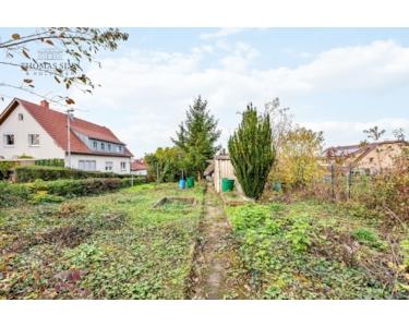 Derzeit ist das Areal mit einer ca. 1932 erbauten Doppelhaushälfte, einem Gartenschuppen sowie einer Einzelgarage bebaut. Das Grundstück ist vollständig an die öffentliche Infrastruktur angeschlossen (Wasser, Abwasser, Strom und Gas).