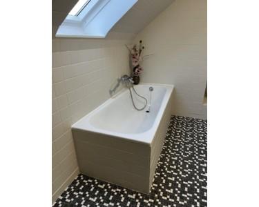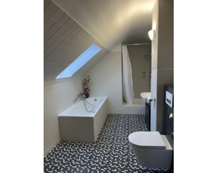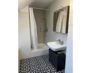 - Badezimmer: Das Badezimmer ist funktional ausgestattet und bietet eine Badewanne, eine separate Dusche sowie ein spülrandloses Wand-WC, das höchsten Komfort bietet.
