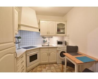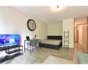 Die Wohnung ist voll möbliert und ausgestattet mit einem komfortablen Boxspringbett, einem Sofa mit zusätzlicher Schlaffunktion für einen Gast, einem Schreibtisch sowie einem Fernseher.
