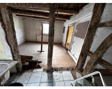 Die Immobilie wird ausdrücklich für einen schnellen Gesamtverkauf angeboten. Ideal für Käufer, die eine entwicklungsfähige Liegenschaft mit großem Potenzial suchen. Zum Verkauf steht eine außergewöhnliche Kombination aus einem Fachwerk-Vorderhaus (257,61 m²) und einem Massivbau-Seitenhaus (138,53 m²). Beide Gebäude befinden sich auf einem gemeinsamen Grundstück und können – nach Genehmigung – künftig wie zwei separate Wohneinheiten genutzt werden. Das Vorderhaus verfügt über 3 Etagen (EG, 1. OG, DG), das Seitenhaus über 2 Etagen (EG, DG). Das Grundstück ist 567 m² groß. Die Ursprungsbebauung datiert auf circa 1900, Erweiterungen erfolgten vermutlich zuletzt um 1950. Das Erdgeschoss wurde früher gastronomisch genutzt, die oberen Etagen dienten der Wohnnutzung.