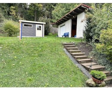 Großer Garten und angrenzendes Grünland mit liebevoll angelegten Bereichen, viel Platz zum Entspannen und einer Gartensauna für erholsame Stunden in der Natur.