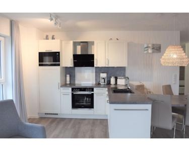 Zwei komfortable Schlafzimmer, ein großzügiger Wohn- und Essbereich mit moderner Einbauküche sowie ein stilvolles Wellnessbad schaffen eine Wohlfühloase für entspannte Urlaubstage.