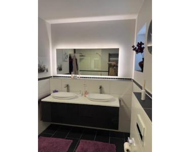 Bad und WC wurden zusammengelegt und somit vergrößert. Die Badewanne wurde entfernt und dafür eine großzügige ebenerdige Dusche installiert.