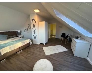 Das WC im Dachgeschoss ist ebenfalls vollständig erneuert, wie auch die Bodenbeläge und Deckenverkleidungen in beiden Wohnräumen.