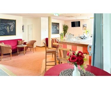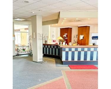 Im Eingangsbereich empfängt eine einladende Lobby mit Rezeption und Bar die Gäste und schafft eine angenehme Atmosphäre für Ankunft und Aufenthalt.