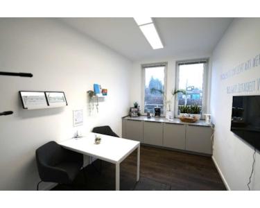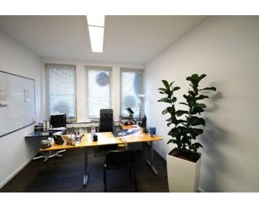 Zum Angebot gehört zudem eine Bürofläche mit 64 m² und drei hellen Büroräumen für insgesamt vier bis sechs Mitarbeiter sowie eine Sanitär-Anlage. Beheizt wird das Büro über Fernwärme.