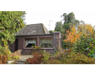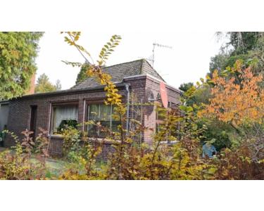 Dieser sanierungsbedürftige Klinkerbau mit Walmdach wurde 1947 erbaut und 1961 um einen Flachdachanbau erweitert.