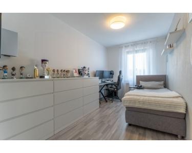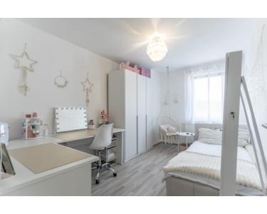Vom Eingang aus gesehen zur rechten Seite befinden sich zwei helle Kinderzimmer, ein weiteres Badezimmer mit Wanne und der gemütliche Wohnraum mit dem Ausgang zum zweiten Balkon.