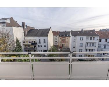 Sie betreten die schicke, renovierte Wohnung und gelangen von der geräumigen Diele zur linken Seite in das große Schlafzimmer, das Duschbad und die Wohnküche mit dem Ausgang zu einem der beiden Balkone mit schönem Blick über die Stadt.