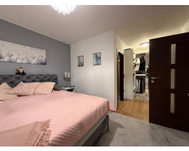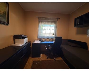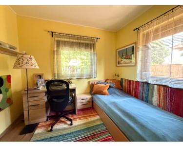 Beim Betreten des Hauses empfängt Sie ein geräumiger Flur. Rechts davon befinden sich das Arbeitszimmer, das Badezimmer und der Hauswirtschaftsraum mit Waschküche. Links befinden sich zwei Zimmer, ein Badezimmer und ein Kleiderschrank. Geht man vom Flur geradeaus weiter, liegt links der Heizraum (mit Zugang zum Garten), rechts das Elternschlafzimmer mit eigenem Kleiderschrank und Badezimmer. Gegenüber befindet sich das geräumige Wohnzimmer (mit einem einzigartigen Kamin), der Küchen- und Essbereich (mit einer Speisekammer, die gleichzeitig als Küchenzeile dient) und ein Zugang zur überdachten Terrasse. Die Terrasse ist überdacht und verglast und verfügt über ein elektrisches Sonnenschutzsystem in der gleichen Farbe wie die Fassade, sodass sie zu jeder Jahreszeit komfortabel genutzt werden kann.