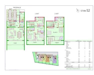 Jede Reihenhausvilla ist als eigenständige dreigeschossige Einheit (Erdgeschoss + 2 Etagen) mit direktem Zugang und privaten Parkplätzen konzipiert. Die Etagen sind durch eine Innentreppe verbunden, und die durchdachte Raumplanung bietet maximalen Komfort und Privatsphäre.