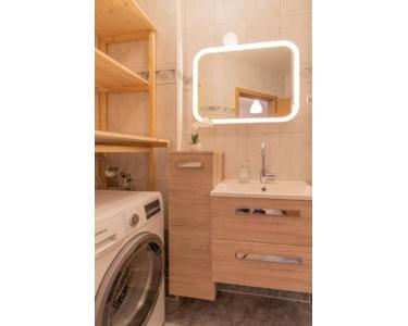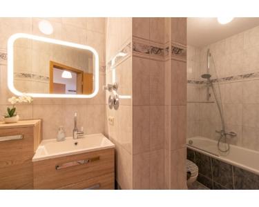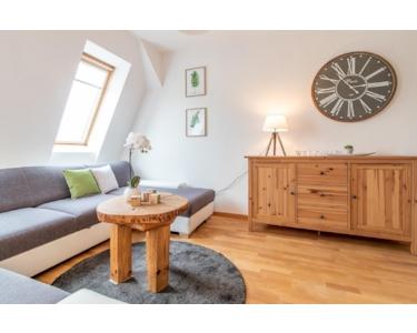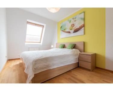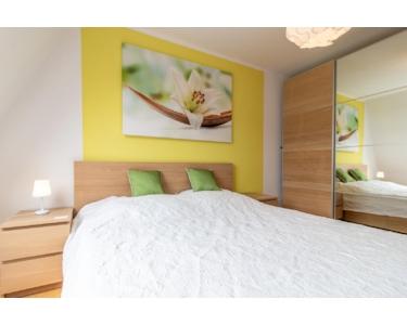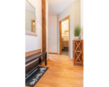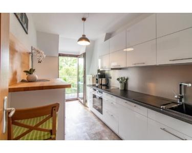 man Zugang zu einem sonnigen Balkon. Die Wohnung hat eine hochwertige, komplette Ausstattung. Das Bad verfügt über eine Wanne mit Duschabtrennung, ein WC und eine Waschmaschine/Waschtrockner.