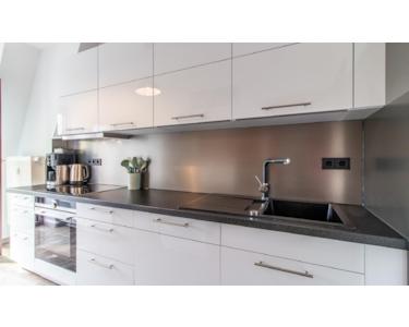 die Wohnung im DG bequem zu erreichen. Alle Räume sind vom Flur aus erreichbar. In der Wohnung befindet sich eine moderne und hochwertige Luxus-Einbauküche mit allen Geräten. Von der Küche hat